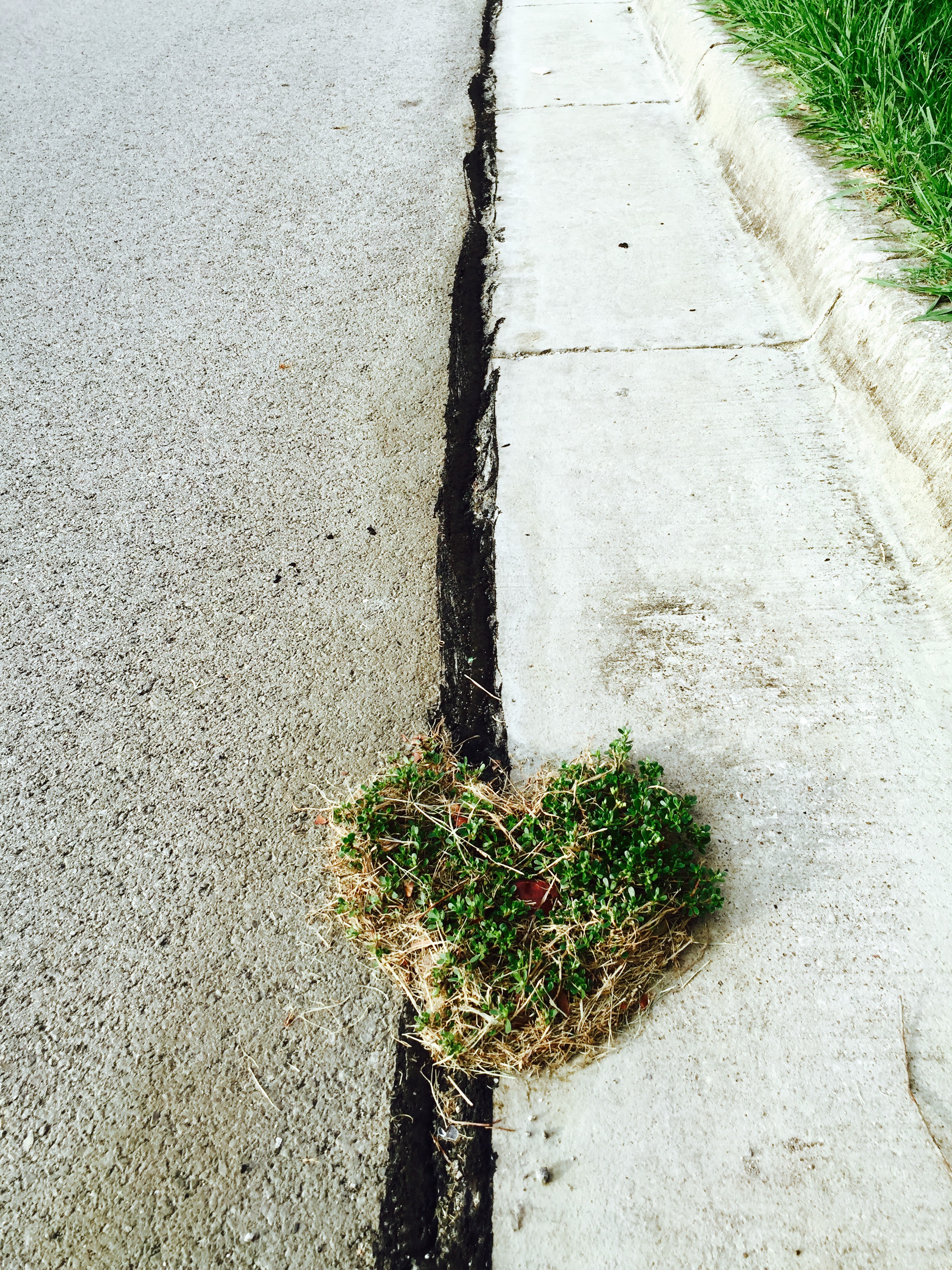 Hace un tiempo estaba corriendo en el parque cerca de mi casa y en mi regreso casi piso este manchón de sácate, lo que llamó mi atención fue ver que la grieta donde estaba creciendo este sácate, estaba sellada y sin aparente orificio para que se germinara este pasto, Pero como puedes ver eso no le importo a la naturaleza para hacer de las suyas, el entorno no afecto su crecimiento porque había un a semilla en ese pedacito de tierra entre el concreto y el asfalto. Lo que más me gusto es que tenia forma de un corazón y algo rojo en el centro. No pude dejar pasar la oportunidad de tomarle una foto y dejar que el Señor me hablara al respecto. Seguí pasando por allí en mis recorridos por algunos días mas, tal vez semanas y cada vez el Señor me decía…. Así son mis promesas no necesitan el entorno adecuado para germinar, necesitan tu fe y tu confianza en mí, yo invente la semilla, si supieras lo feliz que me hace que alguien confíe en mí, que confíe en lo que yo le digo, en lo que yo prometo….